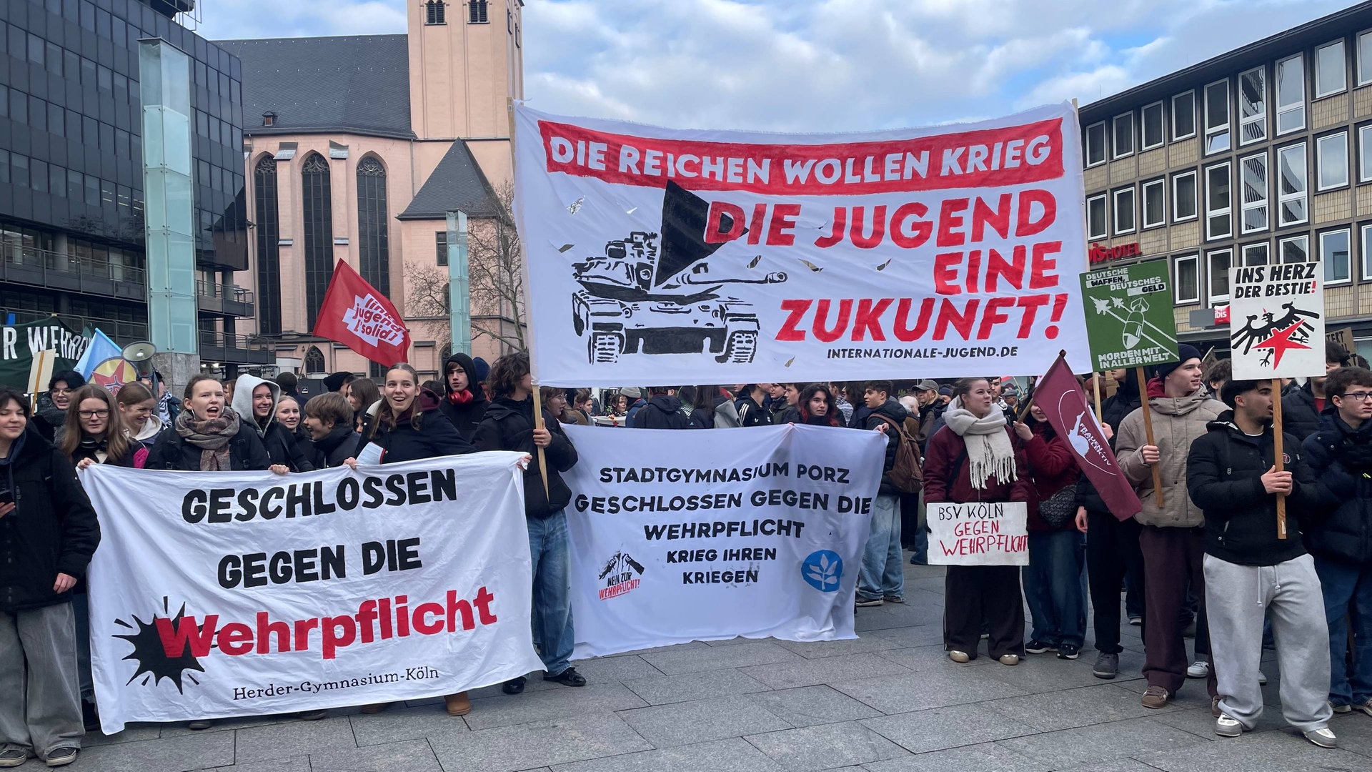 Es war der Auftakt einer neuen Bewegung, die täglich wächst. Am 05.03 steht der nächste Streik an! Daran werden wir uns mit voller Solidarität beteiligen und wir fordern euch auf, dies auch zu tun! Wir als Jugend haben die Chance, diese neue Bewegung gegen Wehrpflicht und Aufrüstung nicht nur auf jede Schule und Uni auszuweiten, sondern auch in die Betriebe, angefangen bei Auszubildenden. Wir fordern die Gewerkschaften und Gewerkschaftsjugenden auf, zu einem allgemeinen Streiktag aufzurufen, der der Startpunkt für einen richtigen Generalstreik sein kann.