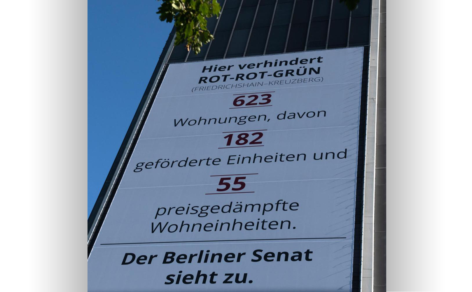 Und was für eine Heuchelei ist es, wenn die Vermieter Schilder tragen, auf denen es heißt, der Mietendeckel „zerstöre ihre Altersvorsorge“ und Großflächenplakate anbringen auf denen steht, Rot-Rot-Grün würde den Bau von „hunderten Wohnungen“ verhindern!